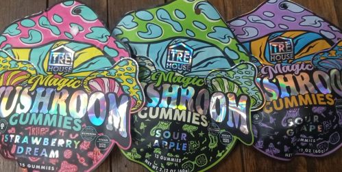 TRE House mushroom gummies are vegan edibles infused with a proprietary blend of nootropics, adaptogens, and mushroom extracts designed to produce euphoric and psychotropic effects. They are offered in various fruit flavors and are sold in packs of 15.